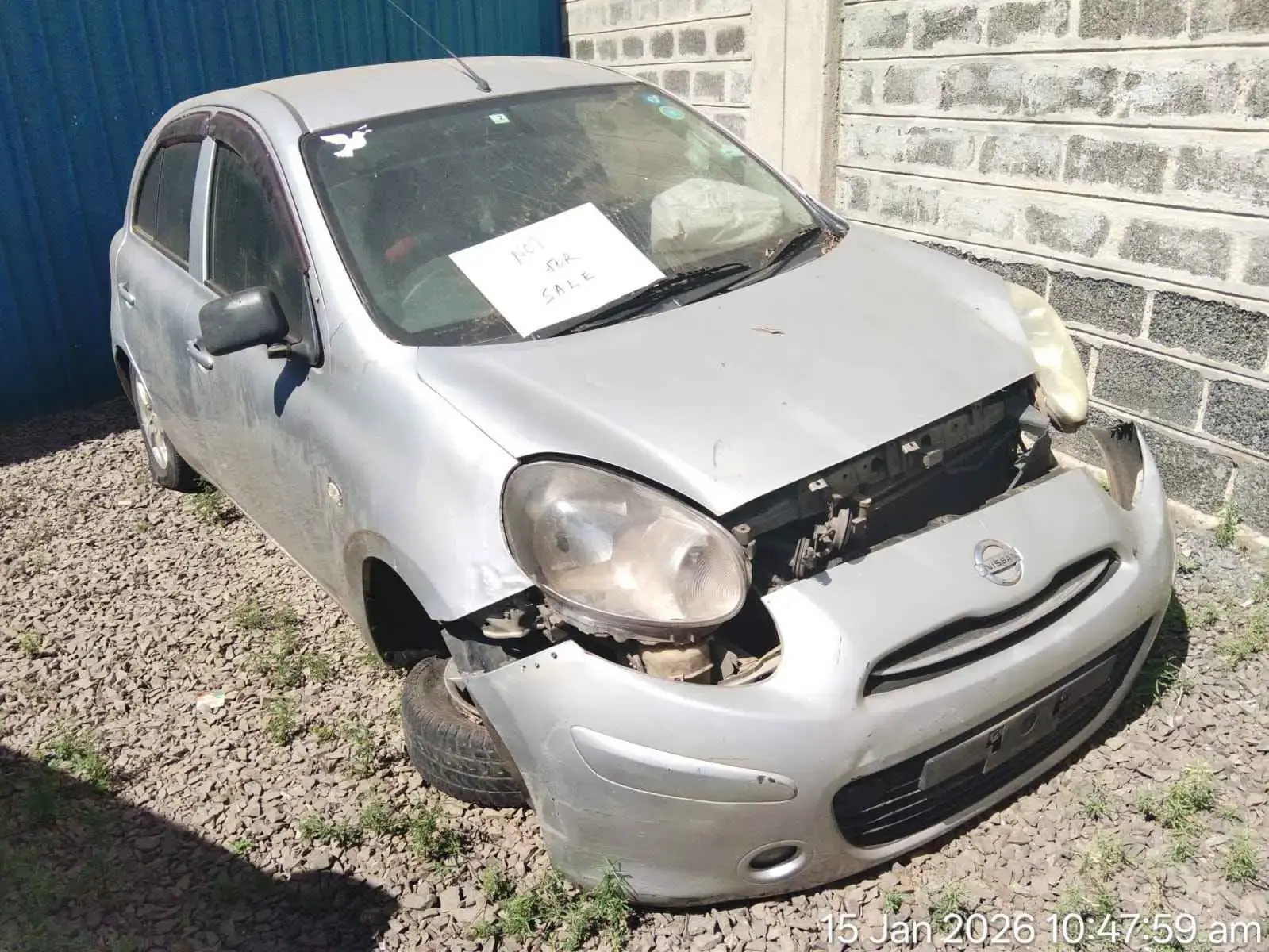 Make - Nissan Model - March Manuf. year - 2012 Milage, km - 233678 Body type - Station wagon Gearbox - Automatic Fuel type - Petrol Engine - 1,198.0 cc Color - Silver Drive side - Right hand drive Number plate - KCX 979Q NOT FUNCTIONAL,IN ACCIDENT STATE,MINOR DENTS NOTED ON OFFSIDE FENDER & BONNET EDGE. OFFSIDE WING MIRROR REPLACED.FRONT BUMPER LOOSELY ATTACHED.WINDSCREEN CRACKED